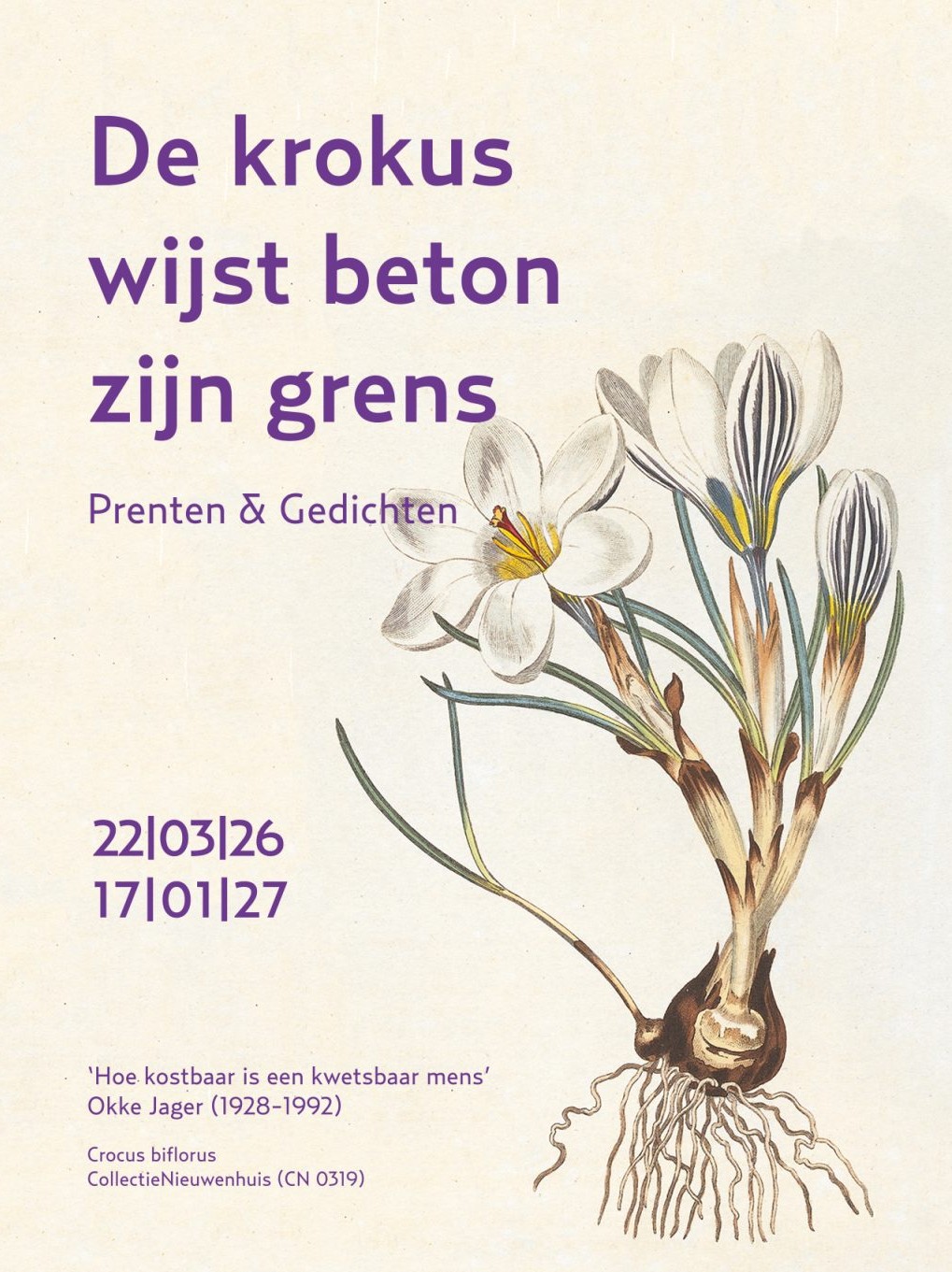 ‘De krokus wijst beton zijn grens’ is de titel van een fraai boekje, dat begin september 2012 is verschenen. Het boekje was uitverkocht. Ter gelegenheid van de gelijknamige huidige tentoonstelling is er een ongewijzigde herdruk verschenen, dankzij mevrouw Heleen Nieuwenhuis. Het boekje bevat een keuze uit de gedichtfragmenten en prenten die in de tentoonstelling Lentepoëzie (zie onder) te zien waren.